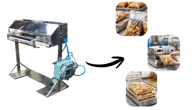 The Double Door Chamber Vacuum Machine with Conveyor is a high-performance packaging solution designed for fast and efficient vacuum sealing of bulk products.